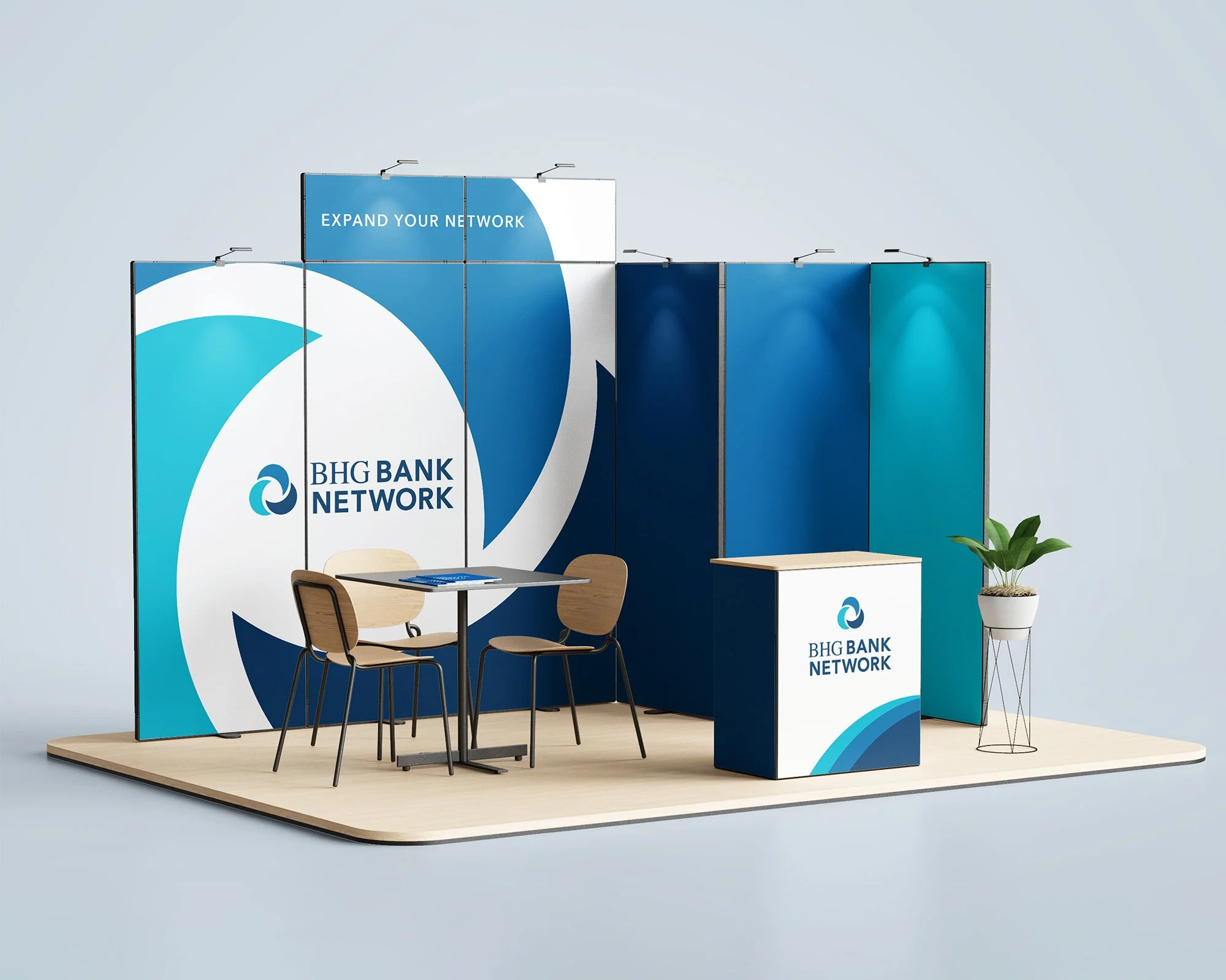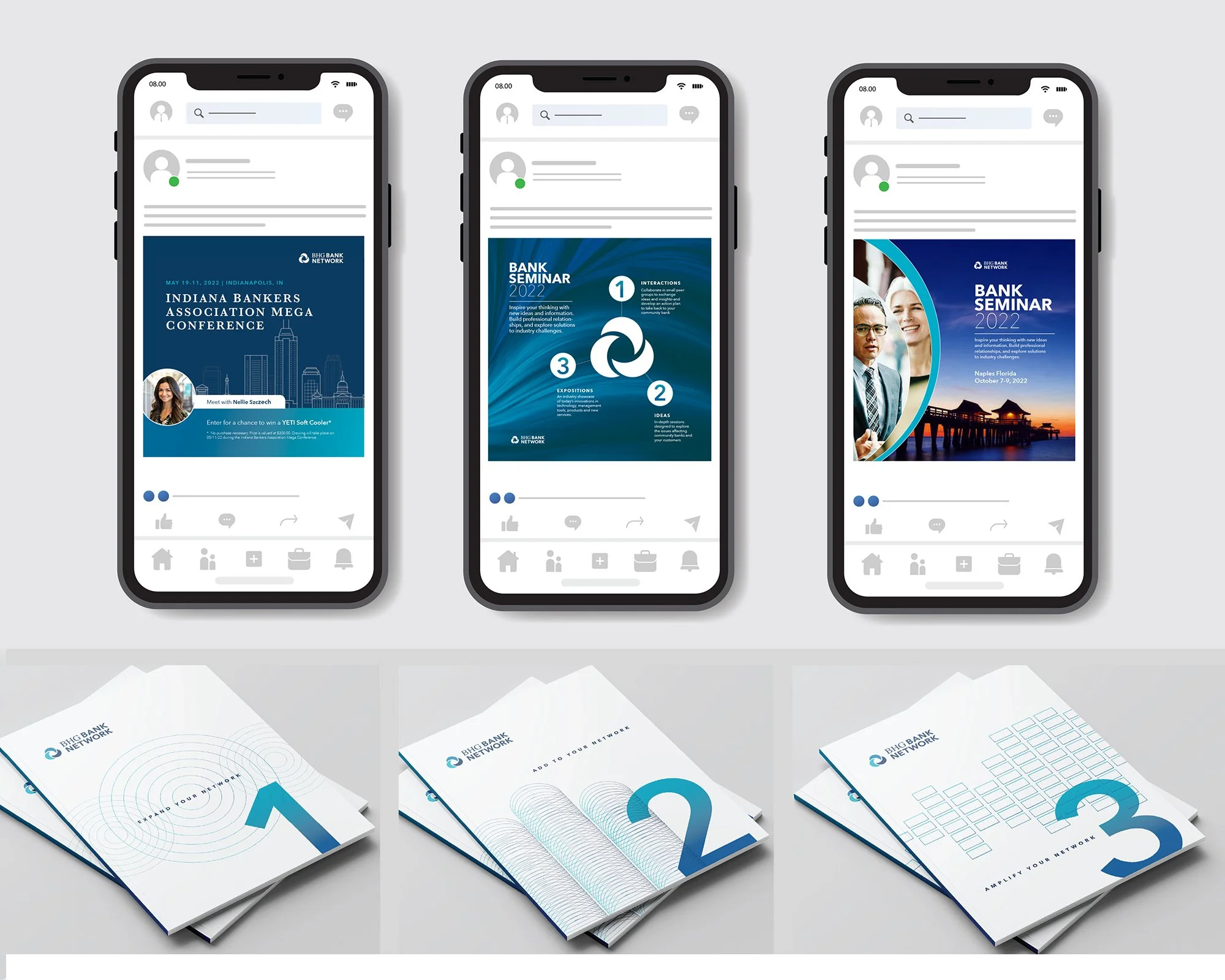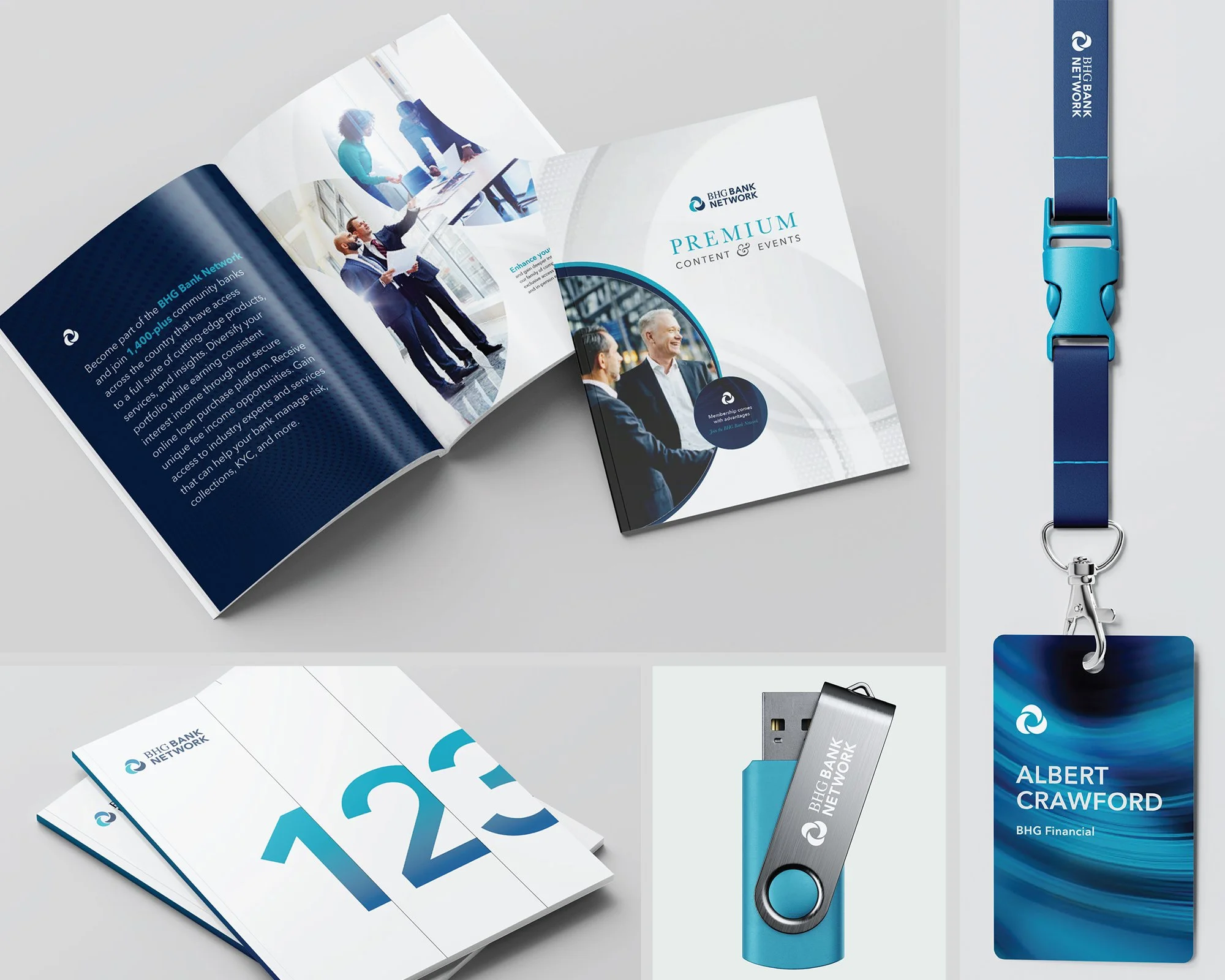 The BHG Bank Network provides an exclusive array of financial programs tailored for its esteemed members. These programs are showcased at quarterly bank seminars, offering invaluable insights and opportunities. I had the pleasure of creating a diverse range of branding materials for these prestigious events, including apparel, swag, event posters, collateral, and even Cinema 4D booth layouts. Below, you'll find examples of my work that helped enhance the visibility and impact of these seminars.