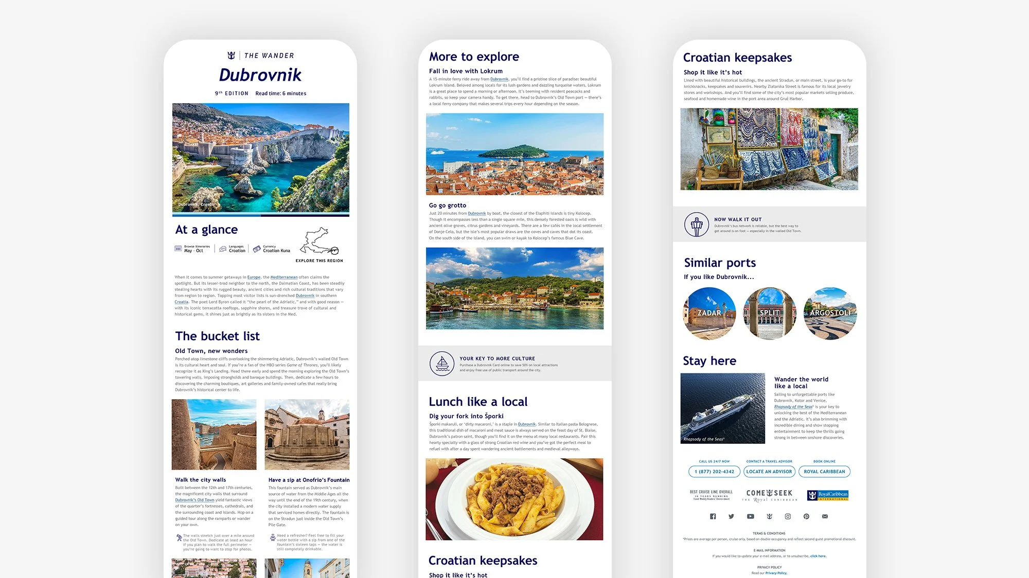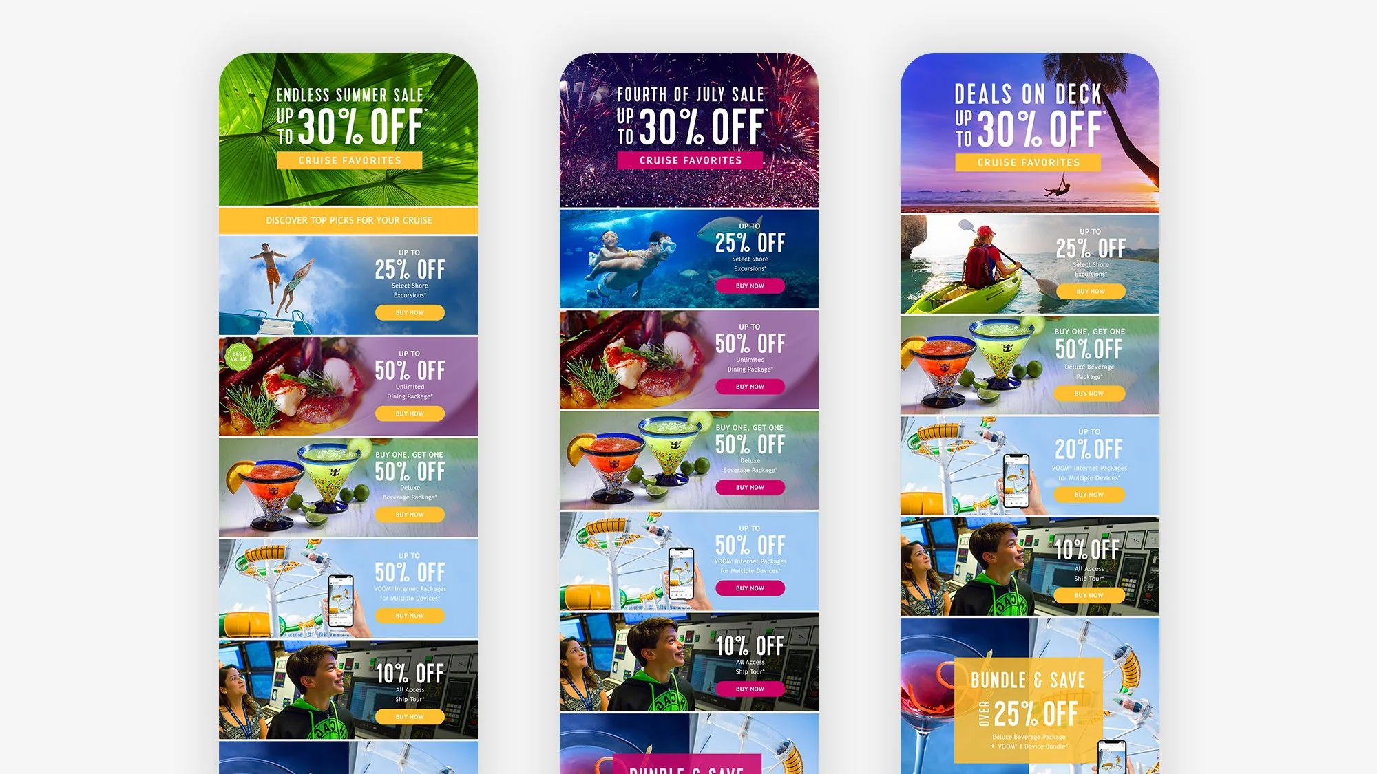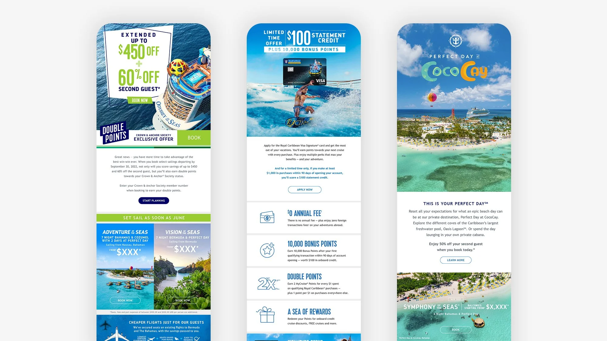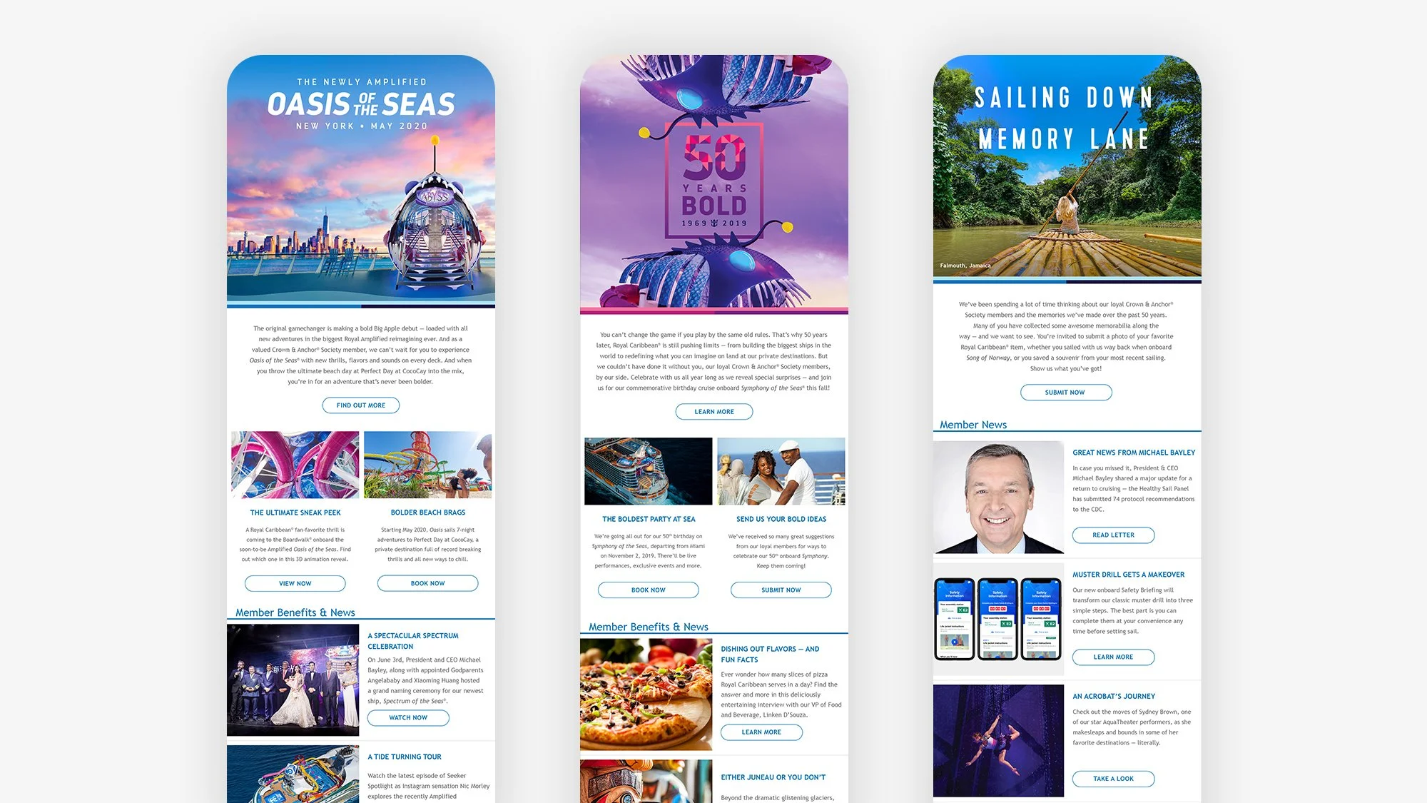 At Royal Caribbean, my role spanned a wide spectrum of design responsibilities, showcasing my ability to innovate and adapt across various mediums. My contributions were not limited to traditional formats; I had the opportunity to significantly contribute to several key digital initiatives and onboard creative.
